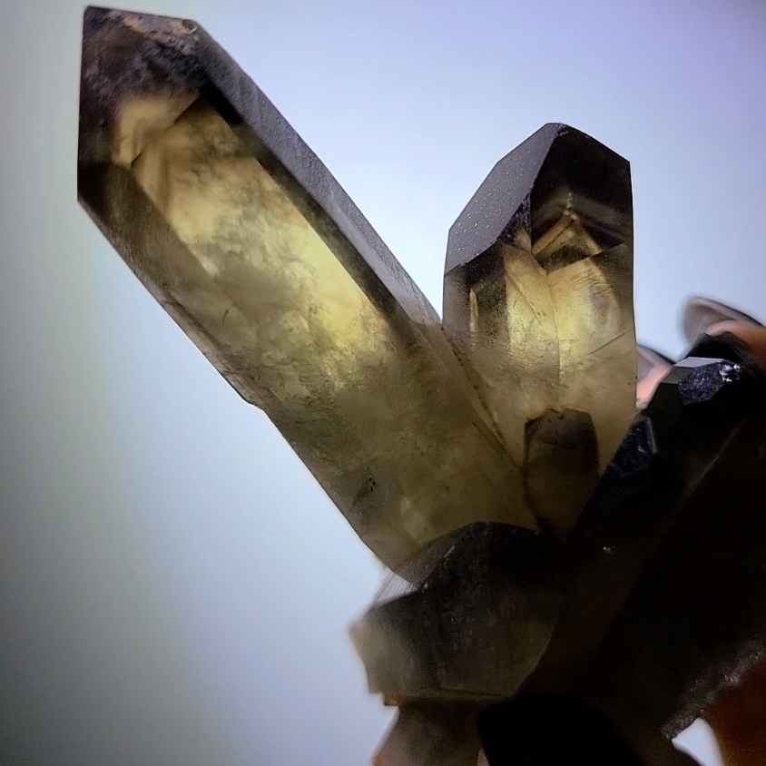 Smoky citrine cluster with phantom smoky pyramids - C96