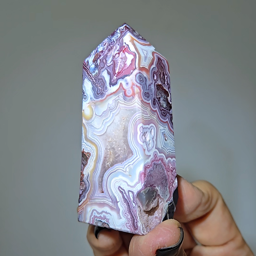 Mexican red agate tower with lavender, pink, white banding - AG205