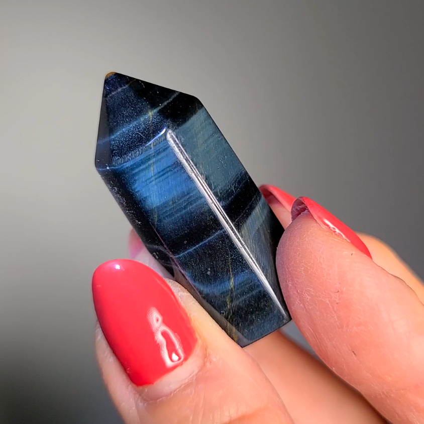 Blue tiger eye mini tower with velvety flash - TE10
