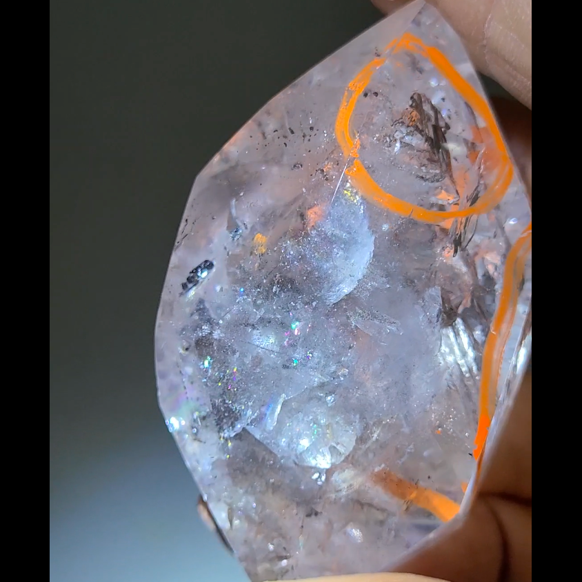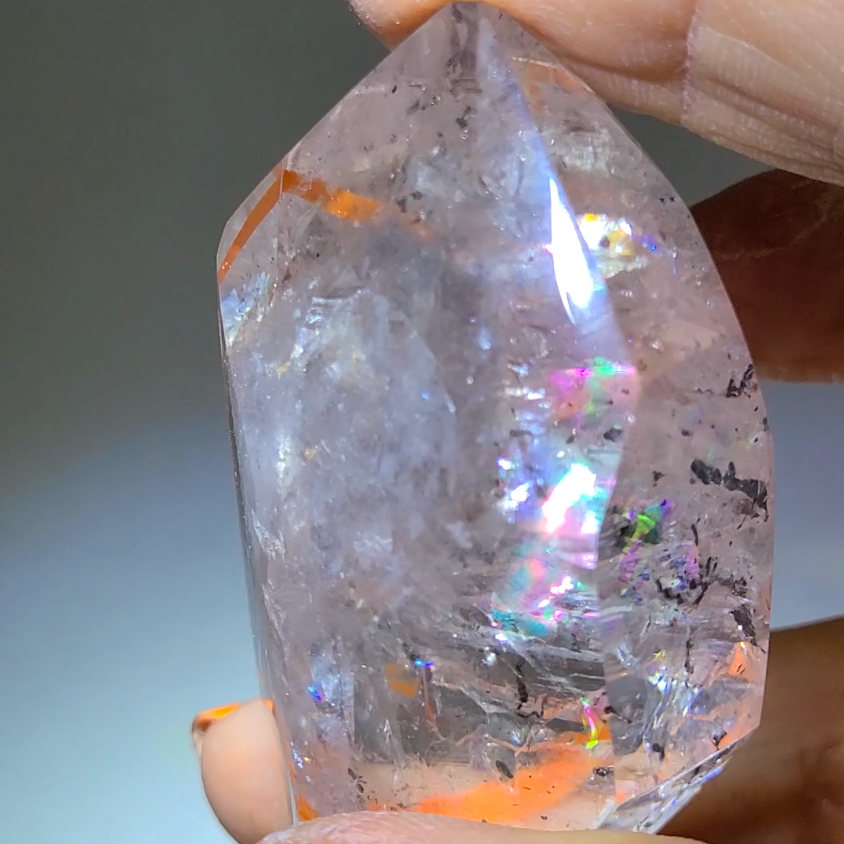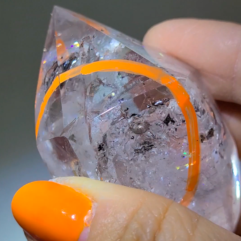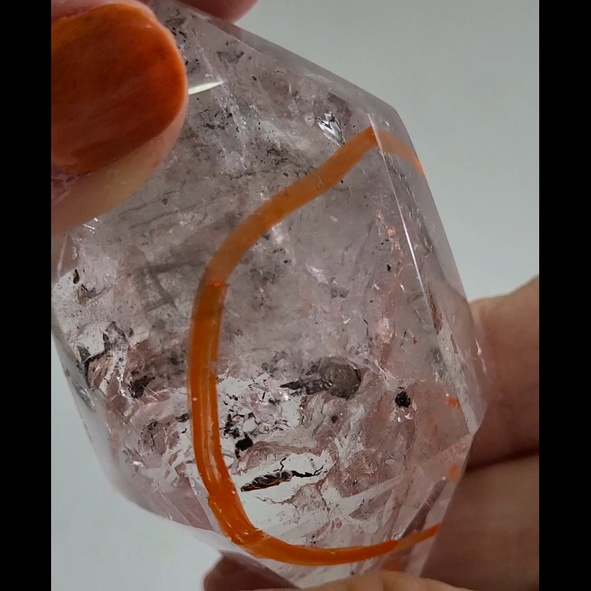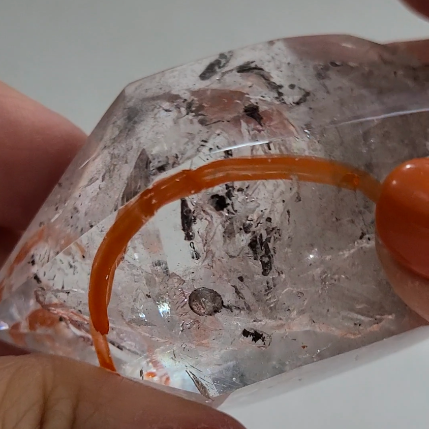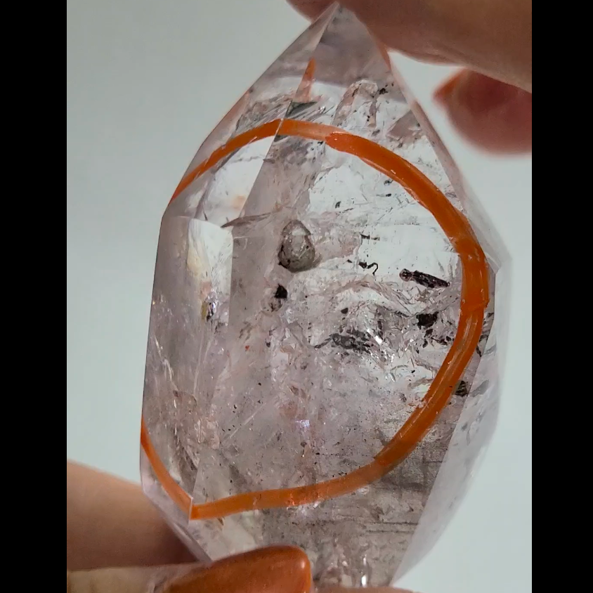 Carbon enhydro quartz combines the amplifying properties of clear quartz with ancient carbon deposits and trapped water bubbles. This unique formation creates a powerful tool for: