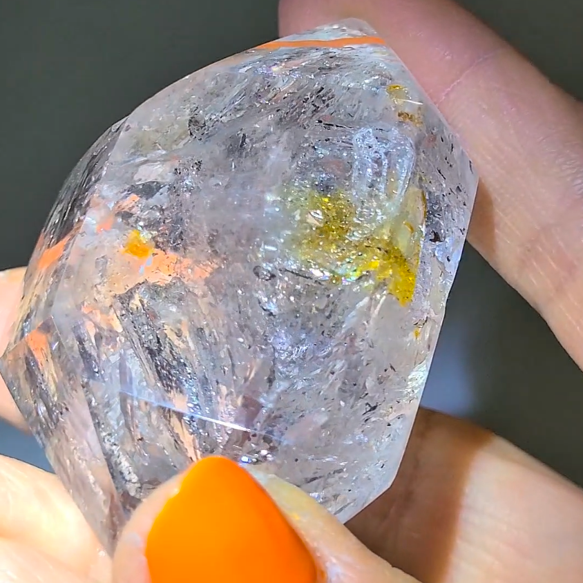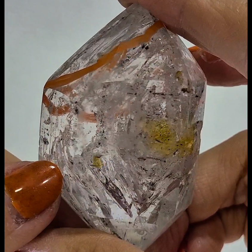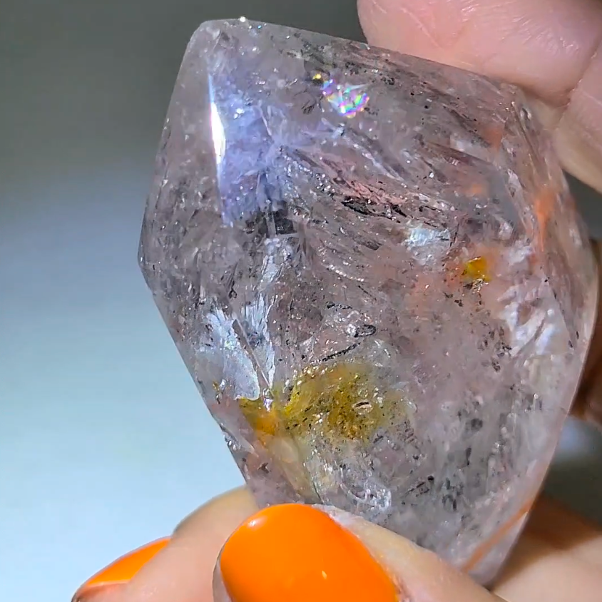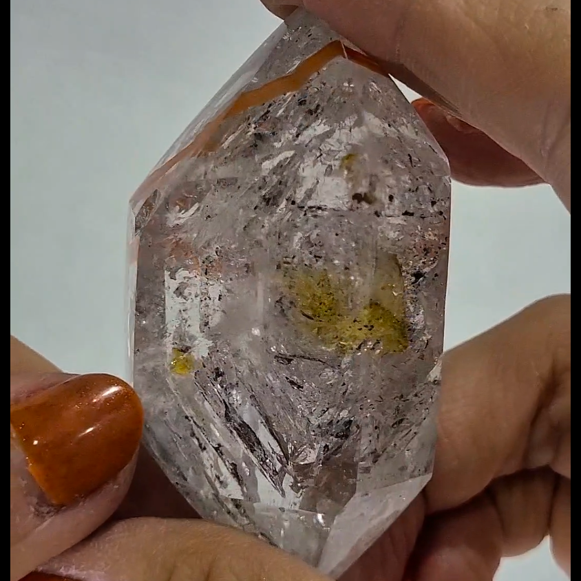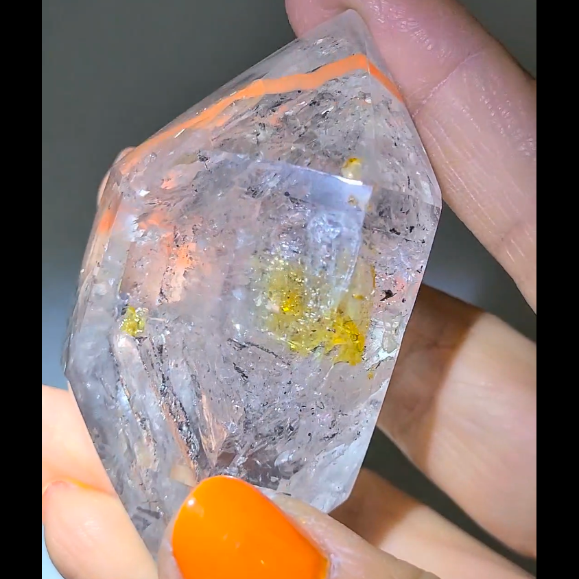 A: The golden inclusions are typically iron oxide or other mineral deposits that formed during crystal growth, adding powerful healing and manifestation properties.