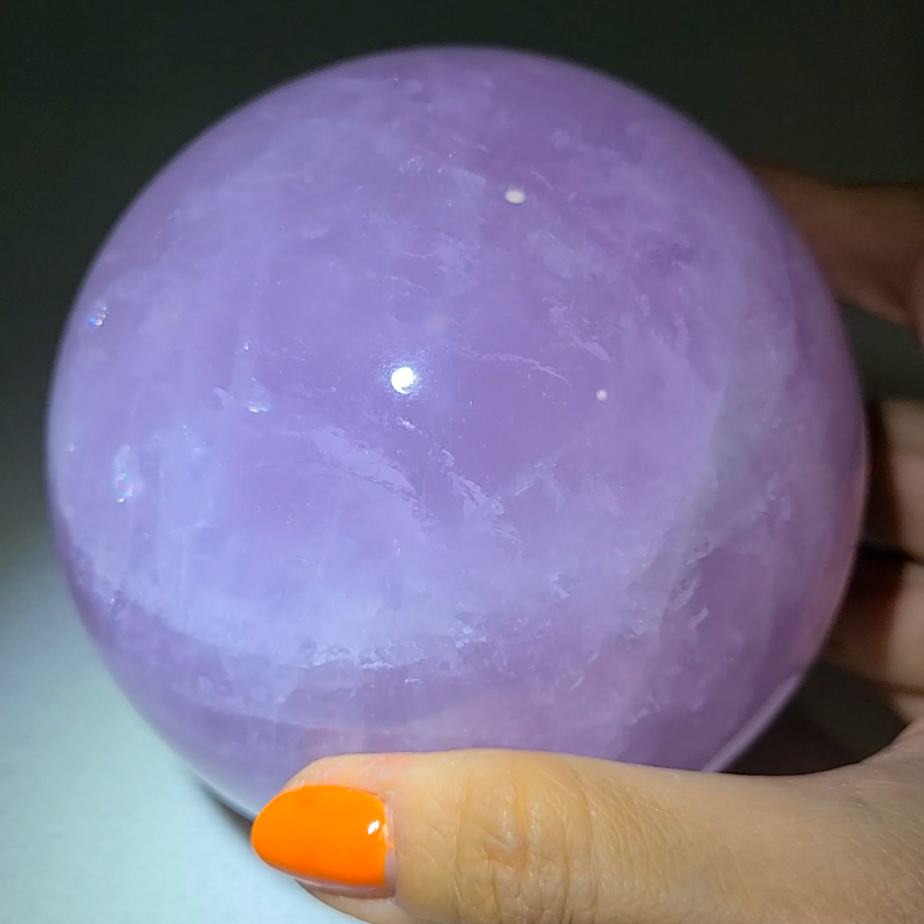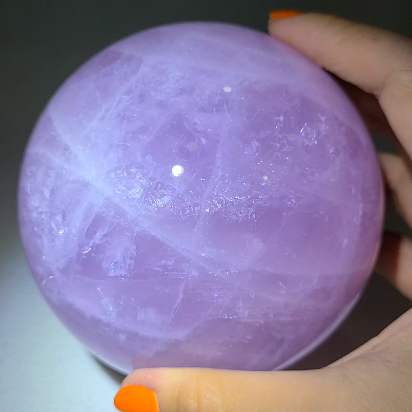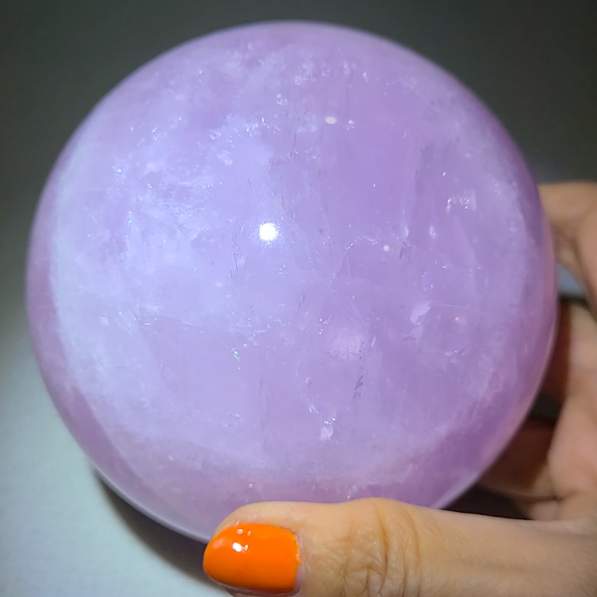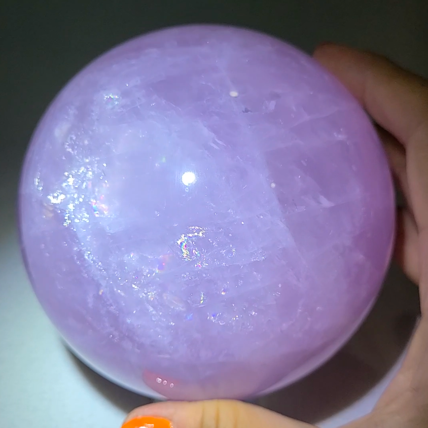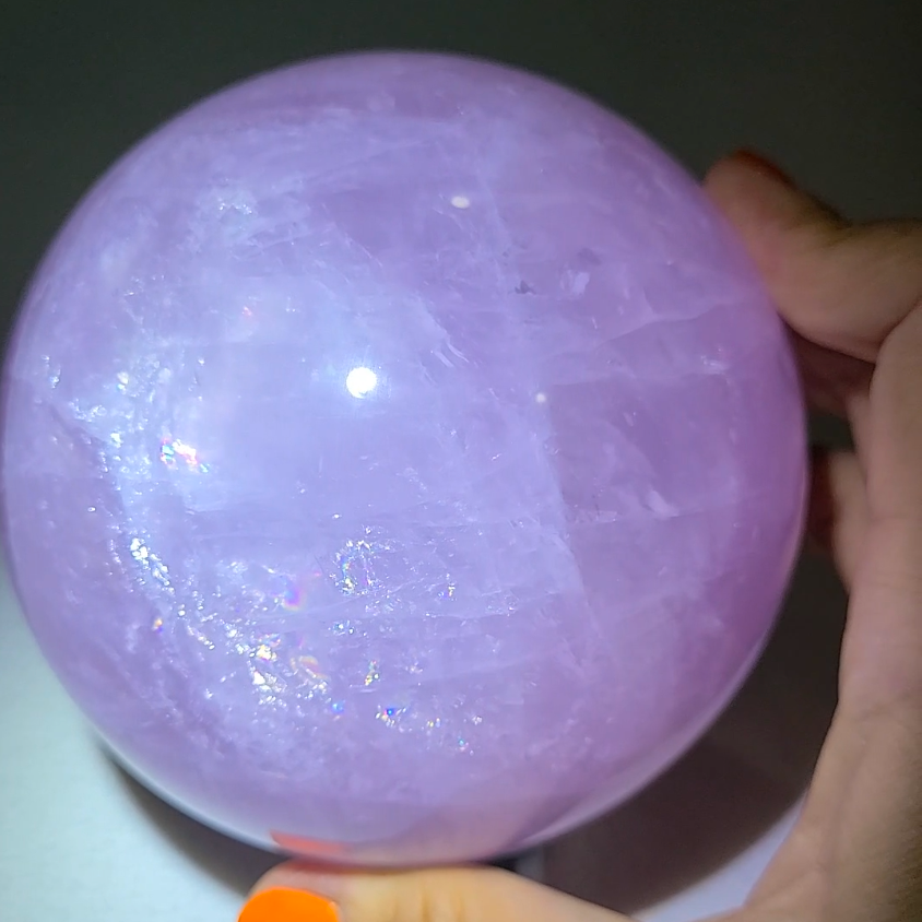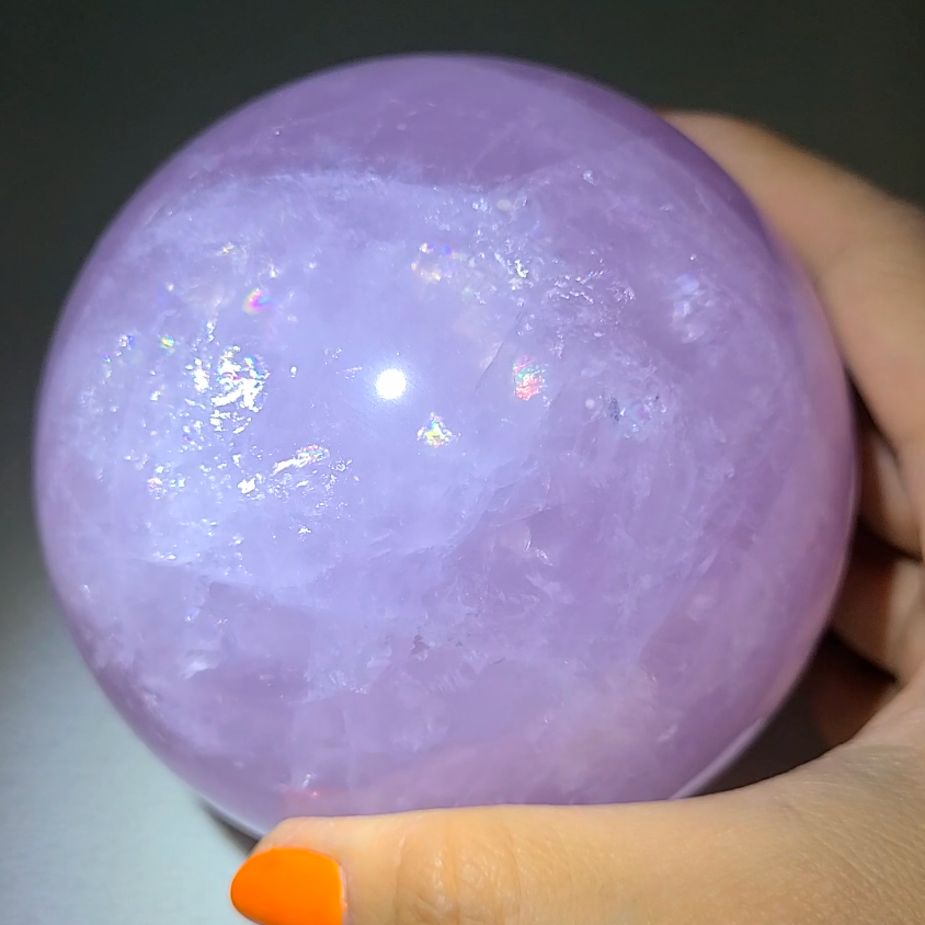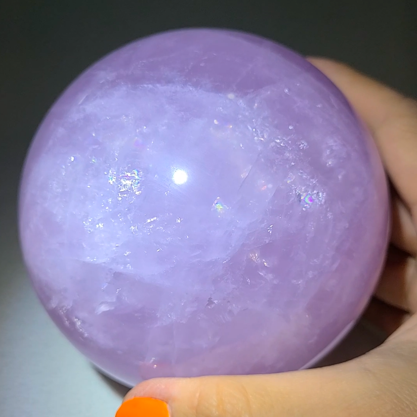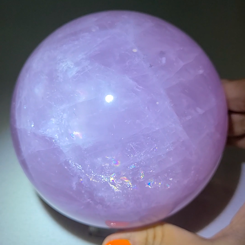 Metaphysical properties of lavender rose quartz sphere with rainbows