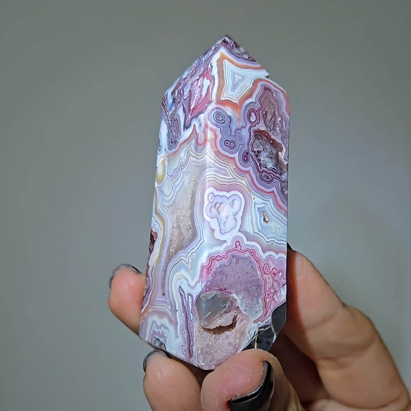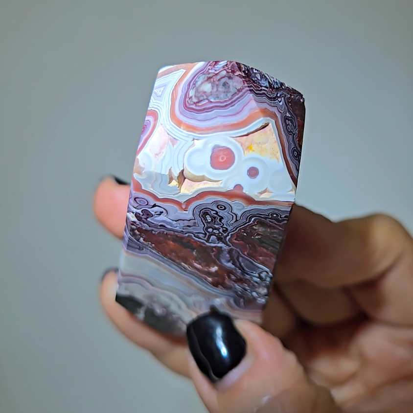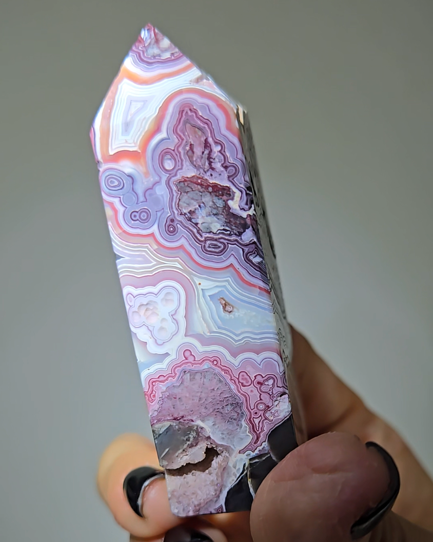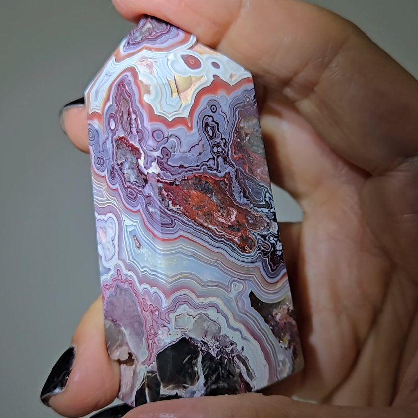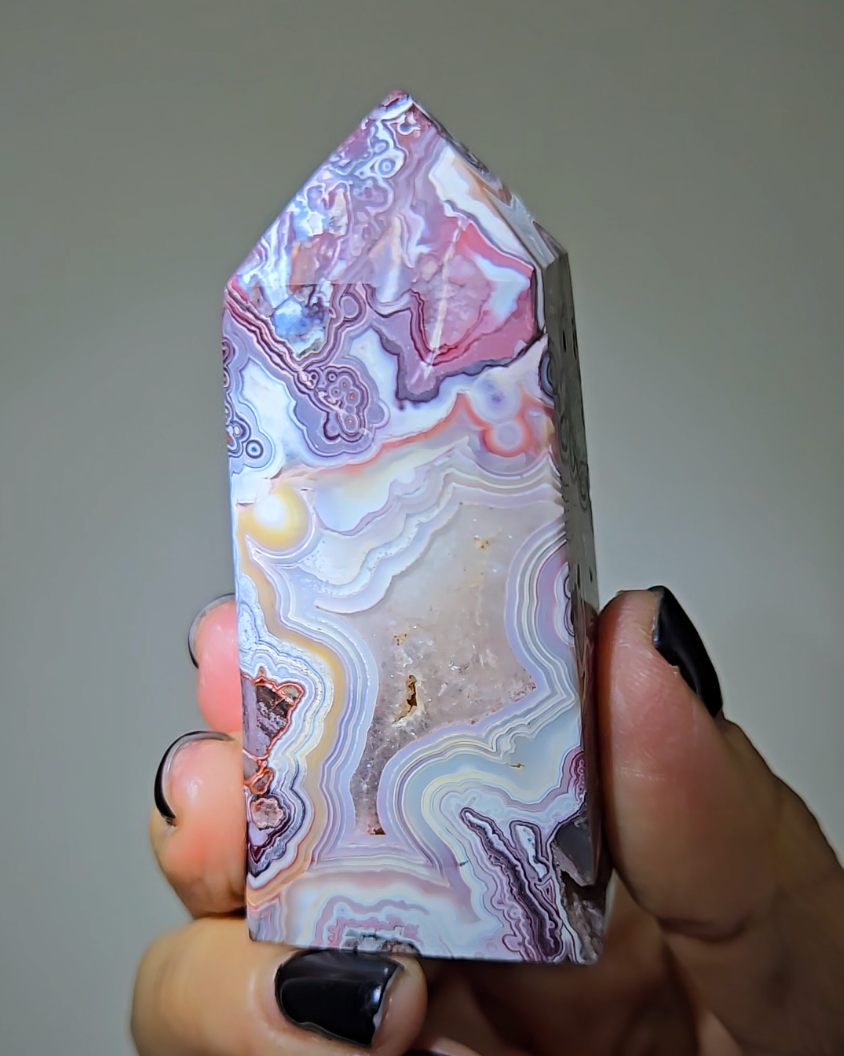 Mexican red agate provides powerful grounding while the multi-colored banding creates emotional equilibrium. The lavender and pink layers specifically target heart chakra healing while white bands amplify clarity and peace.