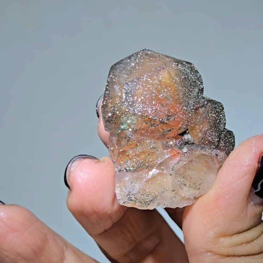 Red calcite activates the sacral chakra, stimulating creative flow and artistic inspiration. The dodecahedron geometry amplifies energy in all directions while pyrite inclusions ground creative visions into practical manifestation.